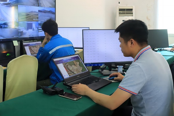 “根據當天生產計劃,導入配礦計劃,尋跡編碼、路線、挖機、卸料口等配置信息的檢查是第一步,在得到無人駕駛安全員的安全回復后,才能下發點火指令?!焙2┲悄芸萍脊緦嵻嚋y試工程師李林說,他正在對無人礦車進行發車前的詳細安全檢查。