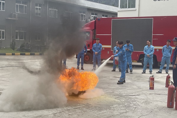 “發現明火時,要保持冷靜、切勿慌張,及時撥打119火警電話報警并對現場進行斷電,隨后拿到滅火器首先要將其上下顛倒搖晃使干粉松動,然后拔掉鉛封、拉出保險銷,站在上風口距著火源2-5米位置對準火焰根部噴射……”在凌云通鴻公司,百色市凌云縣消防大隊應邀到公司開展消防安全知識培訓及實操演練。
