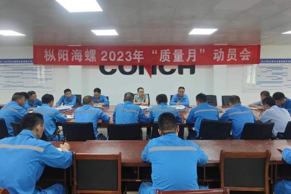 “質量是企業的生命,質量管理工作沒有旁觀者、局外人,個個都是主人翁、人人都是參與者”“上道工序要為下游產品負責,各部門既要各司其職、各負其責,又要相互配合。”圖為樅陽海螺、湖南海螺召開“質量月”動員會。