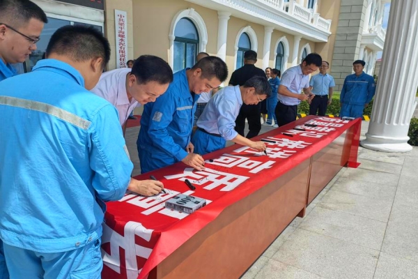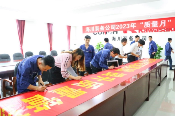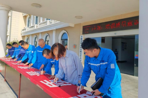 “一筆一劃簽下的不僅是自己的姓名,還有對質量的承諾。”圖為梁平海螺、全椒海螺、海川裝備廣大員工在“質量月”橫幅上簽名,發出“人人關心質量、人人重視質量、人人追求質量”的倡議。