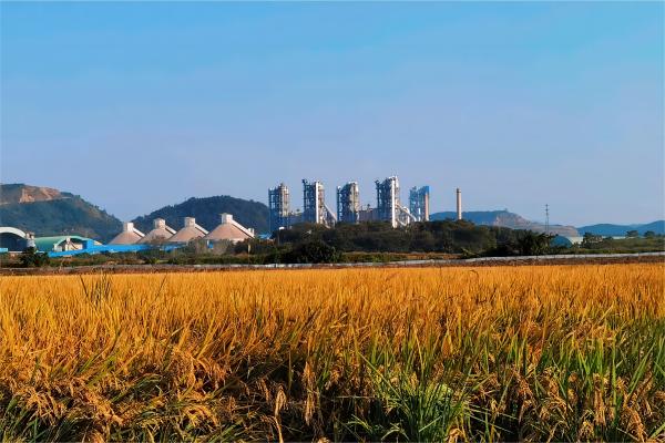 豐收黃,為海螺之秋增添了喜悅的顏色。金燦燦的稻谷,迎著秋風吹起稻浪,遠遠望去就像一片金色的海洋,與鱗次櫛比的海螺工廠遙相呼應,莊重的海螺紅點綴其中,勾勒出一幅工業(yè)與農業(yè)文明相互交融的現代田園風光。
