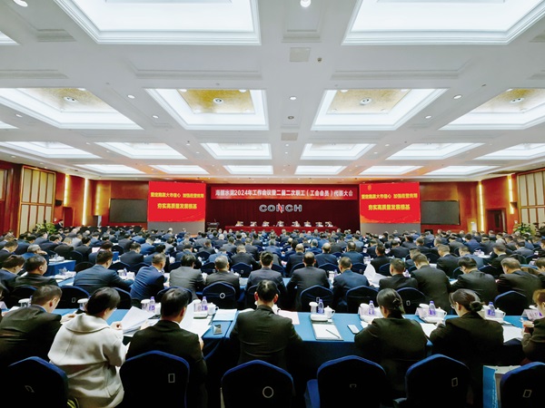 1月30日下午,海螺水泥在總部大廈三樓海螺廳召開了2024年工作會(huì)議暨二屆二次職工(工會(huì)會(huì)員)代表大會(huì)。總結(jié)2023年工作,部署2024年經(jīng)營(yíng)目標(biāo)任務(wù)。公司班子、各區(qū)域、子公司主要負(fù)責(zé)人、部室負(fù)責(zé)人以及職工代表共290余人在蕪湖主會(huì)場(chǎng)參加了會(huì)議,各子公司其他班子成員及二級(jí)部門主要負(fù)責(zé)人以視頻連線方式參會(huì)。會(huì)議由公司副總經(jīng)理吳鐵軍主持。