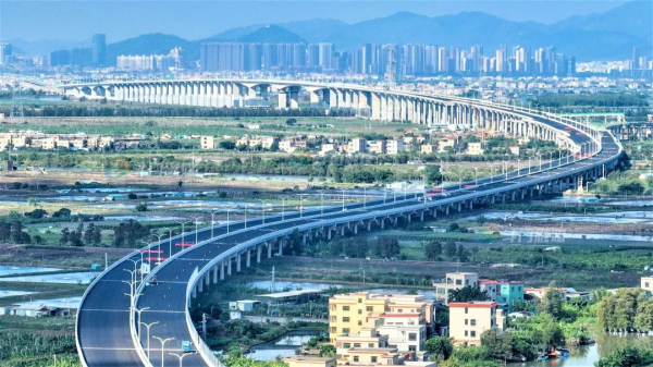 黃茅海跨海通道作為港珠澳大橋的西延,起于珠海市平沙鎮(zhèn),終于江門市斗山鎮(zhèn),全長約31公里,采用雙向6車道高速公路標準,跨海段長度約14公里,全線設(shè)置高欄港大橋、黃茅海大橋2座主橋以及隧道2座、互通4座、服務(wù)區(qū)1處。黃茅海跨海通道的通車,使得粵港澳大灣區(qū)“1小時生活圈”正逐步從發(fā)展愿景成為生活現(xiàn)實。