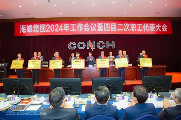 大會隆重表彰了集團公司2023年先進集體和個人,銅陵海螺、輕工國際合肥大中、河南嵩基新材料、寧波海螺新材料等24個單位榮獲“2023年海螺集團綜合管理先進單位”稱號;盧叔敏、韓文輝、段天祥、樂健等22名同志榮獲“2023年海螺集團優秀管理者”稱號;鐘楠楠、詹融、張汝林、孫位仕等108名同志榮獲“2023年海螺集團先進工作者”稱號。