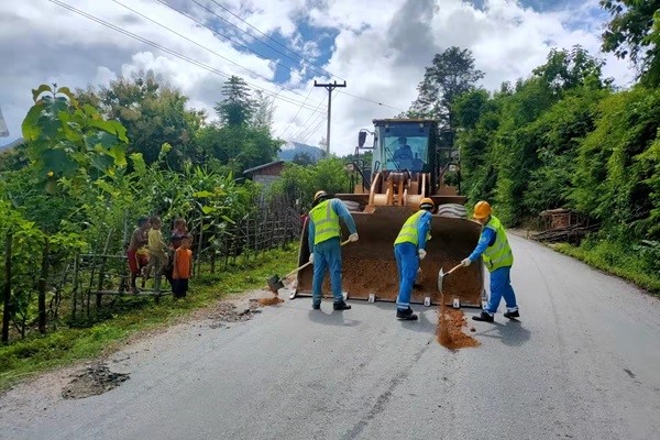 瑯勃拉邦海螺至13號(hào)公路之間有21公里的社會(huì)道路,在這條路上,經(jīng)??梢钥匆?jiàn)身著“海螺藍(lán)”的員工和帶有“CONCH”標(biāo)志的大型機(jī)械在作業(yè)。老撾作為以農(nóng)業(yè)為主的國(guó)家,工業(yè)、制造業(yè)以及基礎(chǔ)建設(shè)相對(duì)薄弱,瑯勃拉邦海螺積極履行社會(huì)責(zé)任,每年對(duì)該道路進(jìn)行修繕,僅其中一次道路修繕,就出動(dòng)人員229班時(shí),反鏟、裝載機(jī)、礦車(chē)等148臺(tái)班,使用碎石等物料2449噸,柴油5300余升,歷時(shí)33天,累計(jì)修整路面2100平方米,極大方便了沿線運(yùn)輸車(chē)輛和人員通行。