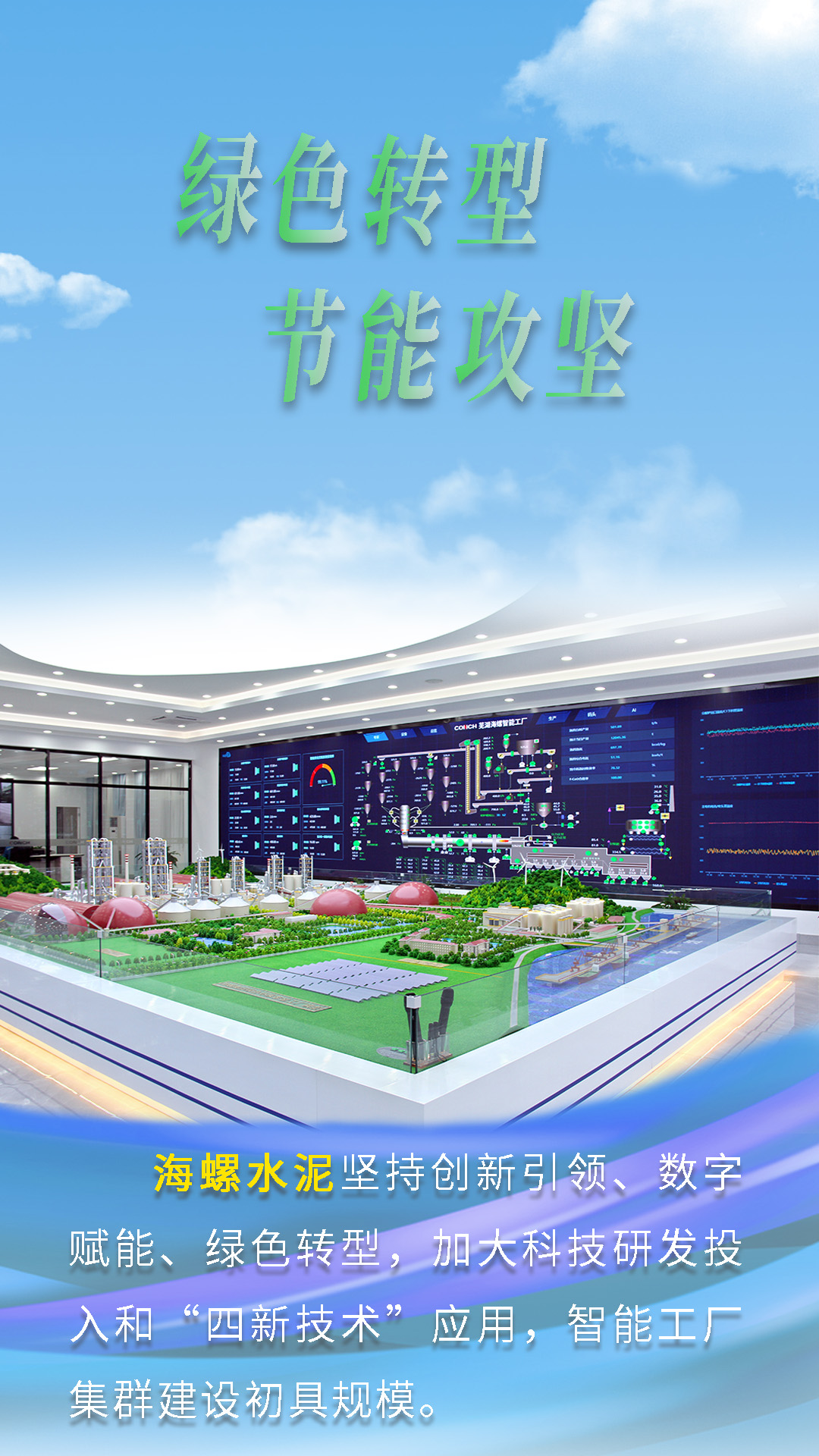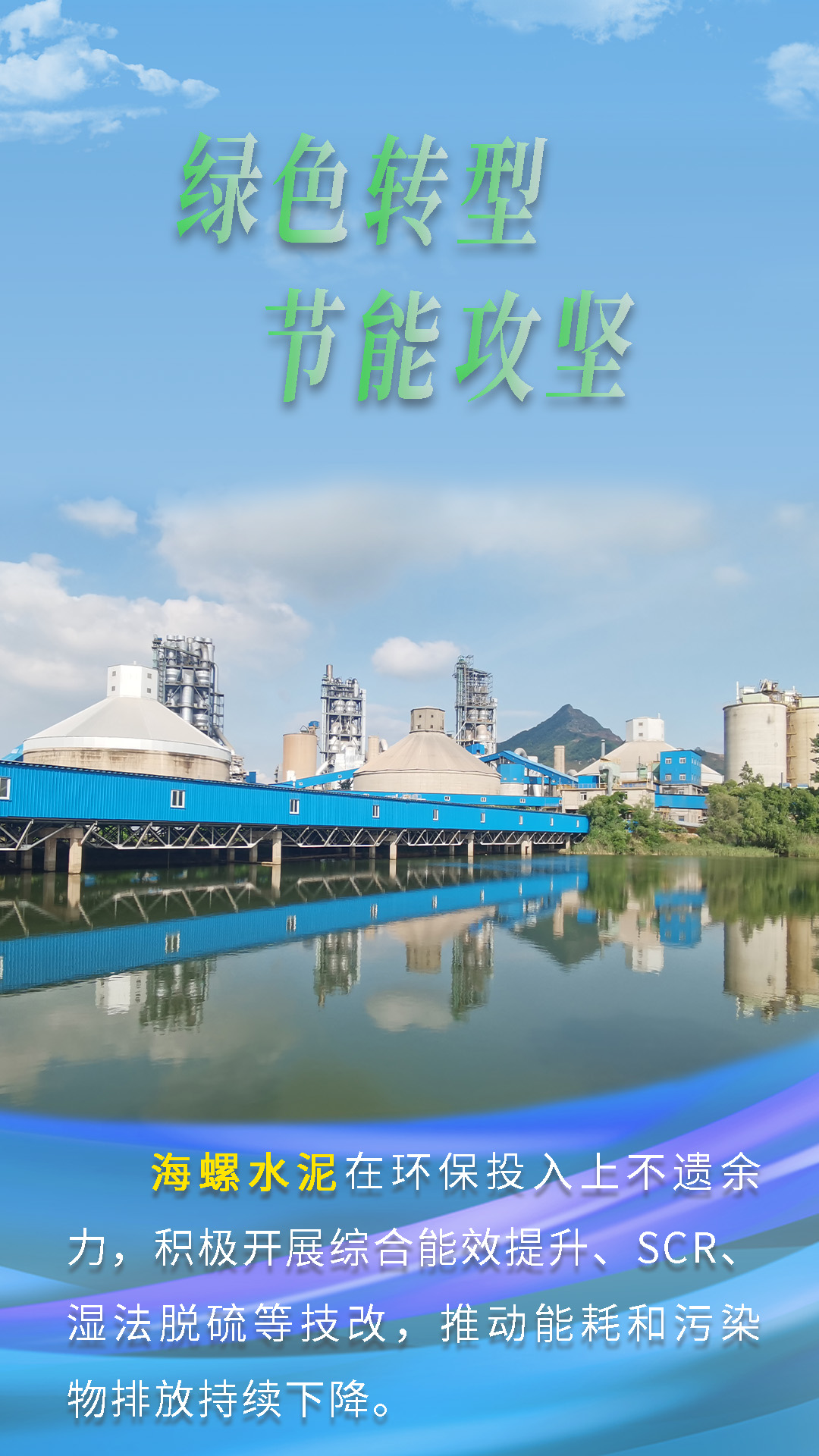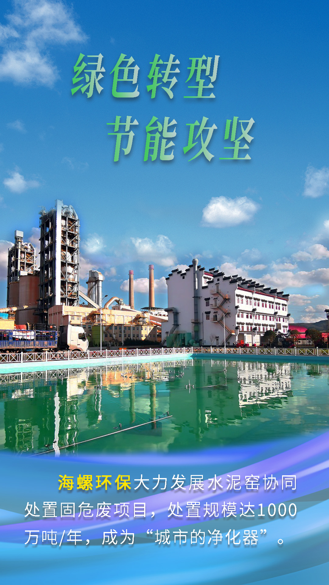 今天跟隨海報(bào)畫面鏡頭,一起來(lái)了解海螺水泥“綠色轉(zhuǎn)型,節(jié)能攻堅(jiān)”的故事。
