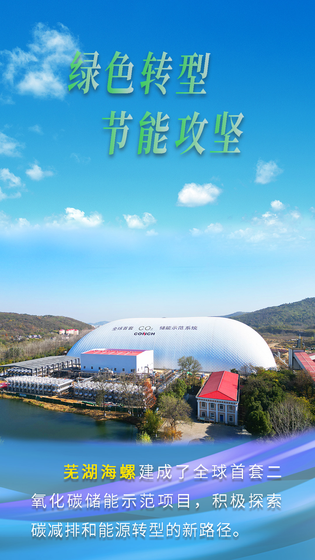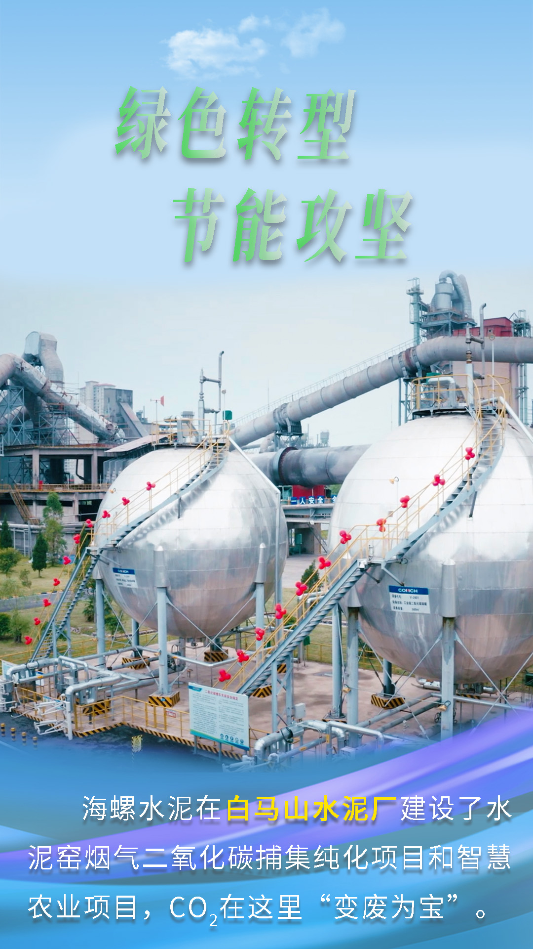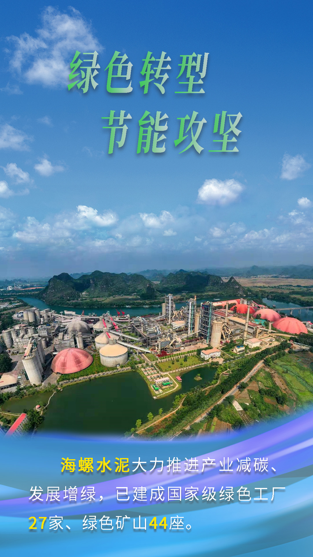 今天跟隨海報(bào)畫面鏡頭,一起來(lái)了解海螺水泥“綠色轉(zhuǎn)型,節(jié)能攻堅(jiān)”的故事。