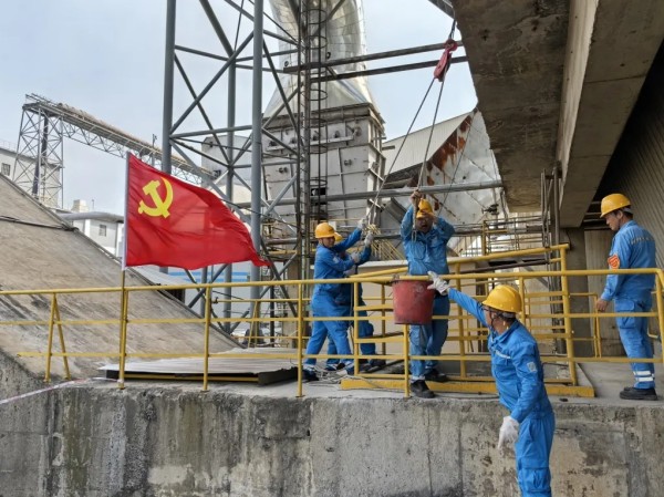 雙峰海螺黨員突擊隊清理篦冷機斜拉鏈地坑積料。他們說:保持決戰狀態,沖刺目標任務,讓鮮紅的黨旗在一線高高飄揚。
