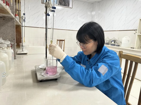 佛山海螺質控處陳淑芳在測進廠熟料CaO含量,她說:在這沖刺的關鍵時分,以精準為尺,度量每一絲偏差,不讓點滴疏漏過關,用優質的產品為全年畫上圓滿的句號。