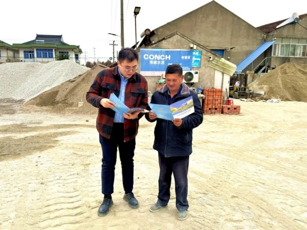 太倉海螺銷售業務員戴景龍正在向客戶介紹太倉海螺袋裝水泥真偽辨別方法,他說:客戶的需求就是我們的目標,客戶的肯定就是最好的業績。