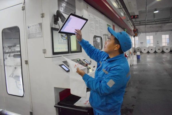 廣元塑品印刷機主操馬強正在核對生產數據,他說:這是生產源數據,每一個數字都關乎著產品的質量與生產流程的精準性,馬虎不得。