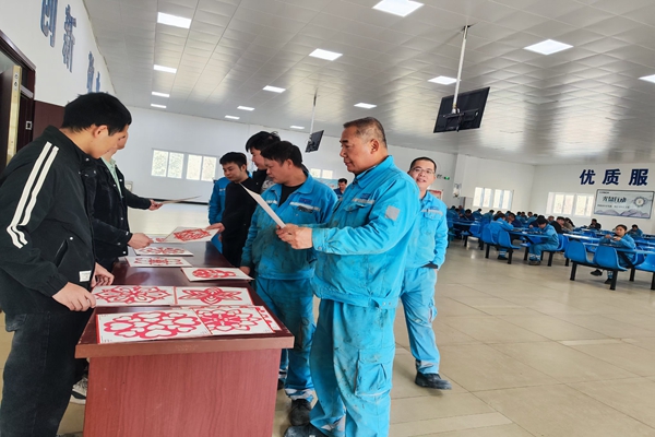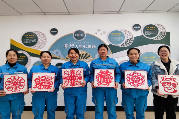 “想不到今年還能領到手工剪裁的窗花,我只有在小時候外婆給我剪過,讓我想起小時候的春節,真是越來越有年味兒了!”一位生產崗位的員工一邊挑選著窗花一邊說道。