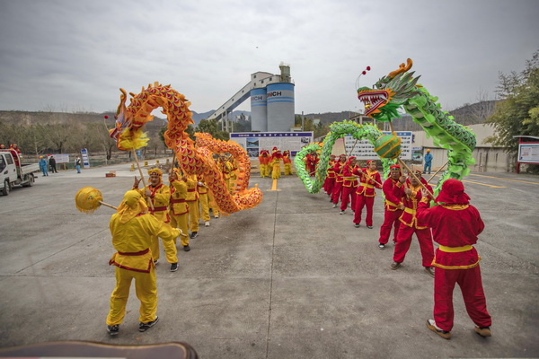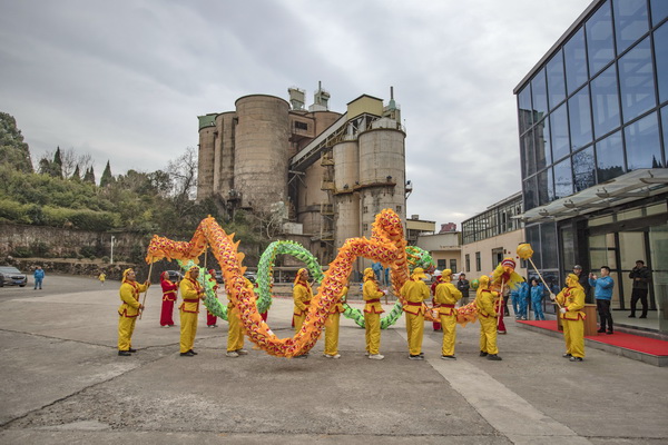 上午8時28分,龍獅隊抵達宣城海螺公司。他們從礦山分廠到兩條日產5000噸生產線,從中控樓到發運廣場、辦公樓……一路龍獅歡躍,與那里的海螺員工共舞同樂。