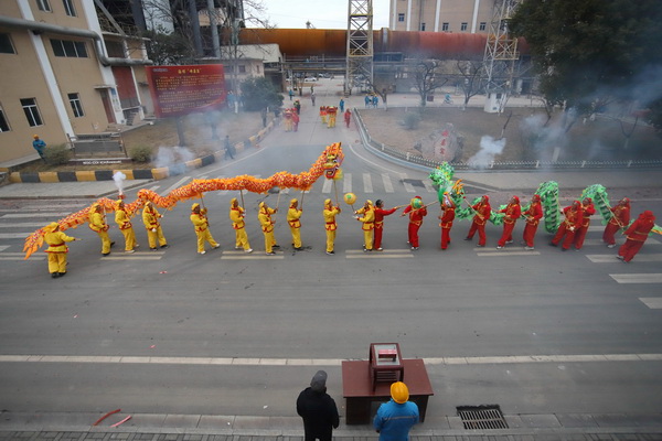 2月11日清晨,初春的早上還略帶有絲絲寒意,由寧國水泥廠、宣城海螺及寧昌公司組成的海螺職工龍獅隊的成員們卻早早起床了,匯聚一起,摩拳擦掌、整裝待發。早上7時28分,爆竹燃放,鑼鼓響起,龍獅隊迎著東升的旭日,前往宣城海螺,開始了為期一天的元宵節舞龍舞獅表演活動。