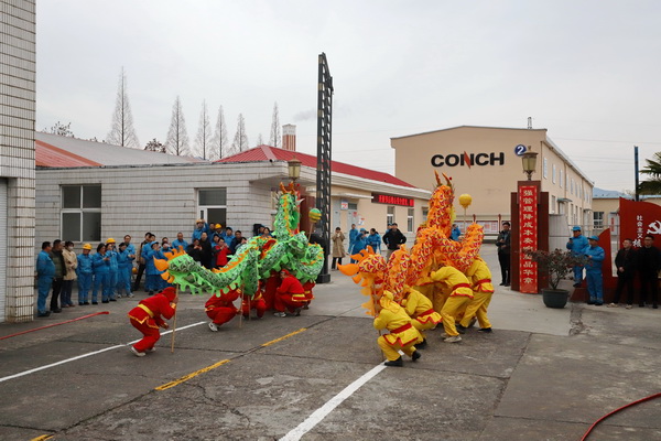 13時18分,龍獅隊回到寧國水泥廠,從海螺山下的礦山、從日產5000噸生產線,舞到海螺“母親窯”、舞到了人才培養基地寧國培訓中心……所到之處,廣大員工精神振奮,滿懷一份感恩之情,表示要進一步凝心聚力、開拓進取,把干勁和熱情發揮到各項工作中去,搶抓機遇共謀寧國工廠新發展。表演過程中,干部員工積極參與到舞龍舞獅活動的表演中,共同歡度元宵佳節。期間,龍獅隊一行還前往在寧企業海螺環保和海創綠能進行慰問表演,給廣大員工送去節日的祝福。