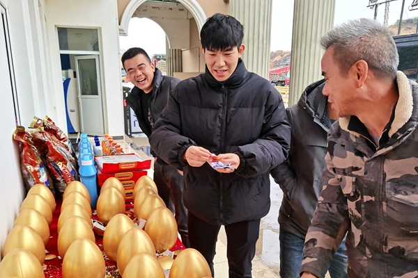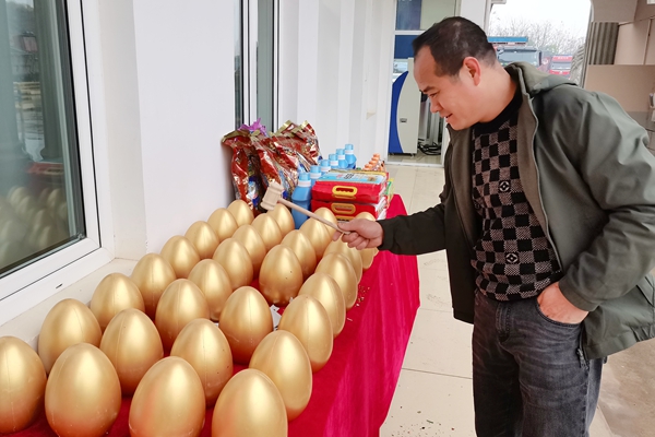 興安海螺銷售服務大廳前一個個象征著吉祥如意的金蛋整齊地擺放在桌面上,等待著幸運的客戶司機朋友們來“砸”出驚喜,拿走開年的幸運100%。