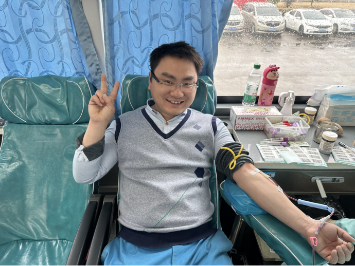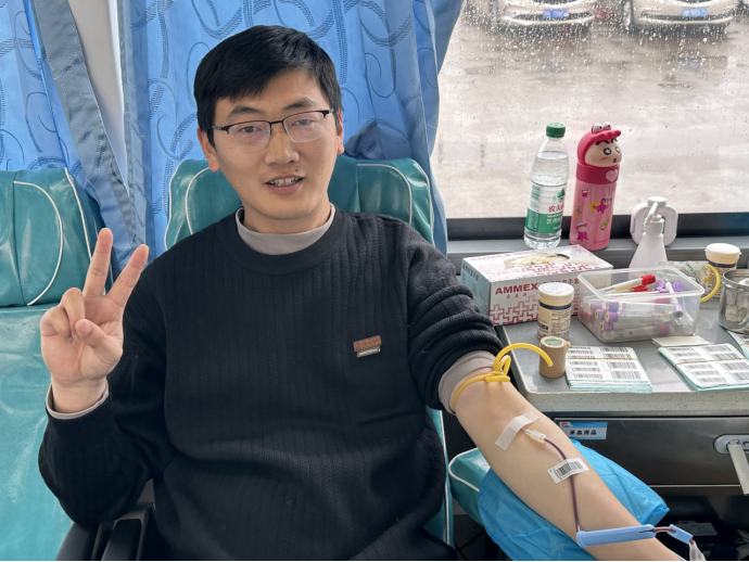 “這是我第二次獻血,說實話還是有點緊張”。詹章地,財務處副處長,自從去年在世界獻血者日捐獻后一直想再次獻血。這次他早就通過公司釘釘報名。詹章地表示:“獻血后感覺自己多了一份使命,以后會堅持每年參與”。