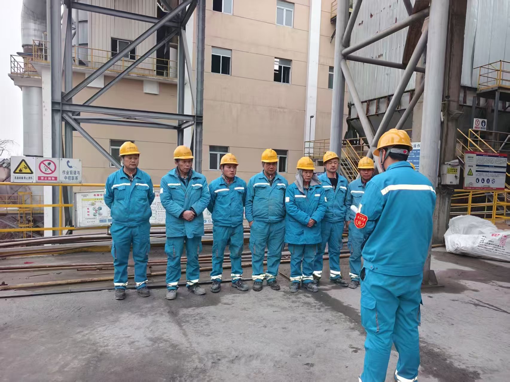 檢修現場冷風穿梭,金屬生冷,有這樣一群“焊”衛者,他們裹著厚重工裝,雙手在寒風中略顯僵硬,卻精準操控焊槍,電流電壓在專注間調校妥當。正在進行分解爐安全防護層法蘭口焊接的是機械維修工謝道俊,也是同事心中可愛的“小胖”,飛濺的火花映照著他堅毅臉龐,每一次精準熟練的操作,都是為檢修期間預熱器系統清理結皮、澆注料施工等作業建立的一道安全屏障。