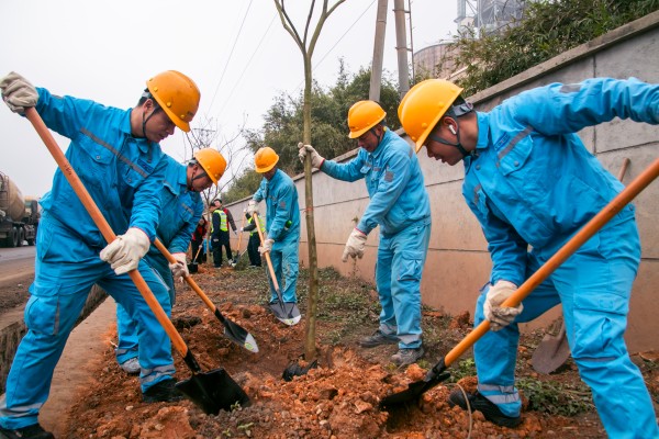 活動現場,扶綏海螺的20余名職工代表與桂西公路發展中心黨員干部、青年志愿者分工協作,揮鍬鏟土、扶苗培土、澆水定根,一派繁忙景象。經過數小時勞作,共種植紫花風鈴喬木50余株,綠化路段2.5公里,新栽樹苗整齊排列,與去年煥然一新的路面相映成輝,勾勒出“車在綠中行,人在景中游”的生態畫卷。