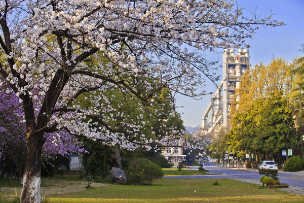 當夕陽為回轉窯鍍上金邊,夜景燈光亮起的時候,晚櫻紛揚似雪。在這美麗夜色的襯托下,怎能不令人感慨:“我們不僅要生產優質水泥,更要培育滋養心靈的沃土!”這片工業熱土上綻放的不只是春天的花朵,更是一個制造企業對可持續發展的深刻詮釋——當科技創新與生態文明琴瑟和鳴,冰冷的生產線也能生長出溫暖的生命力。