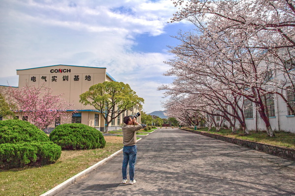 工業綠廊變身打卡勝地。清晨六點多,晨光穿透薄霧灑向廠區櫻花路,“錦繡大道”邊的十余樹櫻花已披上云霞般的輕紗。愛美的攝影人特意提前一個多小時到崗,手持相機捕捉光影變幻,路過的員工禁不住拿出手機,拍攝這動人的春光,年輕的女職員們,在櫻花樹下,在綠草地上,擺出各種造型,誓要將美麗的春光留下。