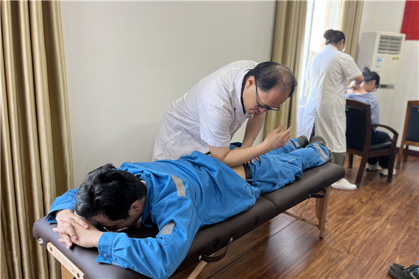 隨后,專家團隊針對婦科疾病、甲狀腺問題、慢性病管理、中醫(yī)調(diào)理等健康需求一對一進(jìn)行解答,并免費提供血壓、血糖測量及體重評估服務(wù)。康復(fù)科專家通過針灸、推拿等中醫(yī)理療技術(shù)體驗,為員工緩解肩頸腰腿疼痛、疲勞失眠等亞健康問題。