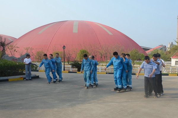 生活區(qū)廣場上,參加竹竿舞、拋繡球、踩高蹺、三人板鞋等民族傳統(tǒng)活動的職工神采飛揚、精神抖擻,美麗的壯族海螺姑娘在竹竿開合間來回跳躍,帥氣的拋球手將繡球在天空中甩出一條弧度,接球手身軀擺動,將繡球接入背簍中,身穿海螺服的三人腳踏堅實的板鞋,步調(diào)一致地向前奔跑,感受團(tuán)結(jié)的力量,踩高蹺的伙伴們努力維持平衡,大家玩得不亦樂乎,臉上洋溢著幸福的笑臉,充分展現(xiàn)了海螺水泥員工團(tuán)結(jié)協(xié)作、勇于突破自我,追求卓越的精神面貌。