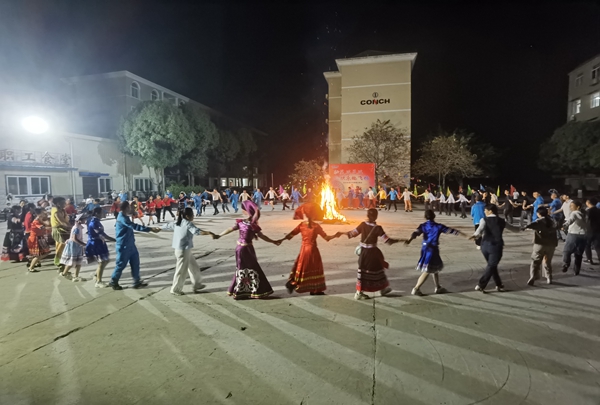 文藝匯演接近尾聲,熊熊燃燒的篝火也散發(fā)著熱烈而溫暖的光芒。參加活動的職工紛紛圍著篝火豪放的跳動起來,現(xiàn)場歡快的旋律與大家熱情的舞步交織,盡情釋放著內(nèi)心的喜悅和激情。音樂與歡笑融為一體,呈現(xiàn)了民族團(tuán)結(jié)和諧的盛況。