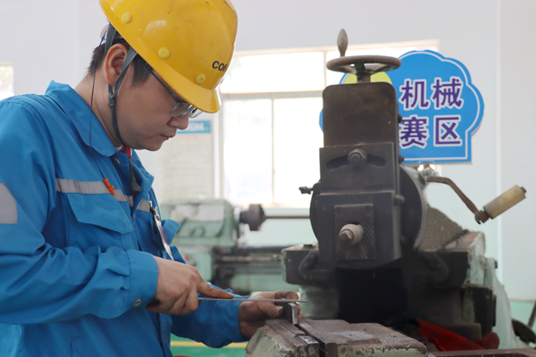 比武現場氣氛緊張熱烈,參賽選手全神貫注,各顯神通,紛紛“曬”出看家本領。在機械操作項目賽區,焊工選手們嚴守安全操作規程,穿戴好勞動防護用品,半蹲或半跪在地上,屏氣凝神,左手穩穩把住面罩,右手精準操作焊槍,在焊條與金屬碰撞的瞬間,迸發出千萬點燦爛金花。另一邊,鉗工選手正站在操作臺前,身體微微前傾,細心打磨著自己的“得意之作”。品質賽區的選手們也專注地投入在檢測操作當中,從稱量到校準全程精益求精,以近乎嚴苛的標準把控每個細節,操作流程規范流暢,充分展現了質檢人的專業素養。電氣賽區的選手們也不甘示弱,一個個化身為電流世界的“指揮官”,接線布置認真細致,PLC編程操作行云流水,贏得聲聲贊嘆!