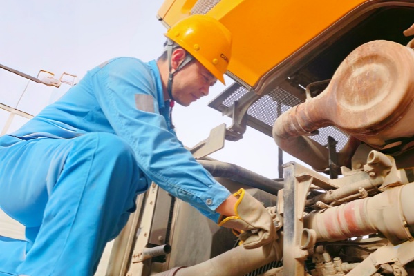 礦山分廠工程機械維修工馮勝元全神貫注地操控著扭力扳手,對TR50礦車發(fā)動機連桿螺栓實施精準施力。這項看似簡單的預(yù)緊作業(yè),實則是保障動力核心穩(wěn)定運轉(zhuǎn)的關(guān)鍵工序,凝結(jié)著延長設(shè)備服役周期的匠心。(胡萬禹/攝)