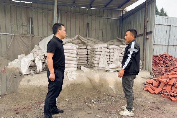 銷售處市場部業(yè)務(wù)員張力林正在拜訪水泥客戶,摸排和了解當(dāng)前市場水泥需求,兩人身后堆滿的海螺牌水泥,交錯的影子投射在水泥袋上,勾勒出合作無間的默契。(李云/攝)