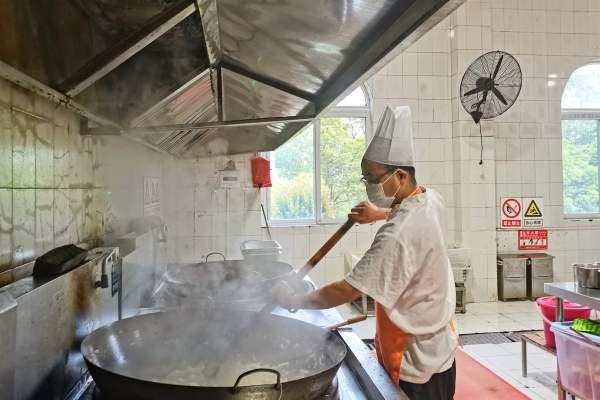 辦公室食堂廚師李晉濤正在制作全體職工午餐,他常說:“后勤保障工作很重要,現(xiàn)場職工太辛苦了,在‘能量補給’上面一點兒馬虎不得。”(楊玲/攝)