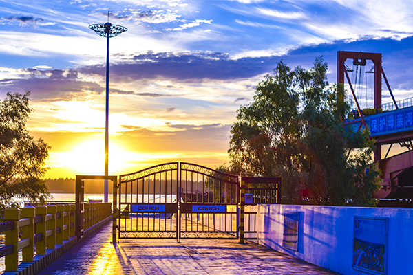 夕陽把碼頭鍍成一片金箔,遠處長江的水流切開霞光浸染的水面,粼粼波光宛若撒落的碎鉆。