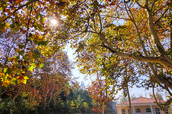 湛藍天空下,樹木枝葉浸染斑斕秋色,于工業景致中勾勒出一抹自然暈染的生機畫卷。
