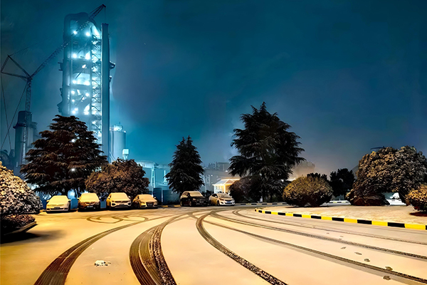 雪花紛紛揚揚地飄落,頃刻間化作了一個銀裝素裹的世界。雪花覆蓋在設備和水泥庫上,仿佛為它們穿上了一件厚厚的白色棉襖。