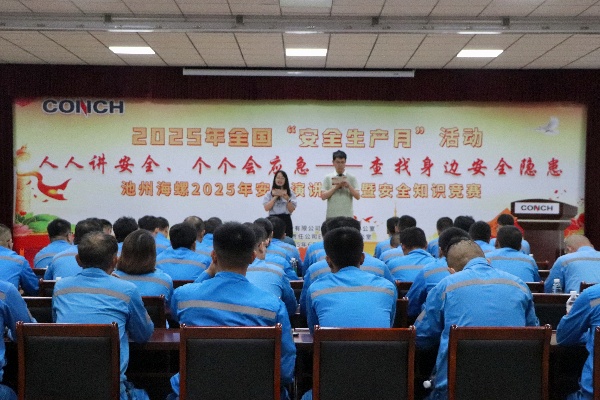 今年6月是全國第24個“安全生產月”,主題是“人人講安全、個個會應急——查找身邊安全隱患”。2025年6月12日,池州海螺在公司廠區組織了一場內容扎實、氛圍濃厚的安全主題系列活動,通過安全演講比賽、安全生產知識競賽及溫馨的家屬開放日活動,進一步將安全意識深植于每位員工及其家人心中,合力構筑堅實的安全堤壩。