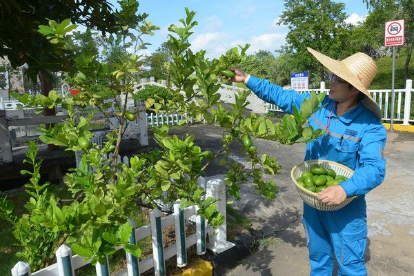 “剛從崗位下來喝上一口,又甜又解渴!”接過冰涼飲品的一線員工,臉上漾開滿足的笑容。公司豐收的水果除了制作特色清涼飲品,還供應職工食堂,為員工果盤增添新鮮品類。從前期豐收的荔枝、芒果、西瓜,到如今持續供應的龍眼、檸檬,再到長勢喜人的菠蘿蜜、香蕉、楊桃、石榴、釋迦……源源不斷的“廠區鮮果”讓員工們時刻感受到生態綠化帶來的實惠。