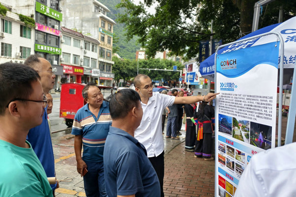 活動現(xiàn)場,鮮明的橫幅與精美的海報在雨中格外醒目,迅速抓住了過往行人的眼球。工作人員熱情地向圍觀的群眾發(fā)放定制宣傳手冊和單頁,圖文并茂地詳細(xì)展示了海螺水泥的各類產(chǎn)品信息。很快,銷售處與生產(chǎn)品質(zhì)處聯(lián)合派出的專業(yè)技術(shù)團(tuán)隊便被市民們團(tuán)團(tuán)圍住。