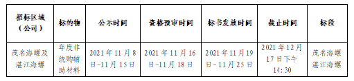 茂名海螺及湛江海螺2022年度非統(tǒng)購(gòu)輔材合同即將到期,為做好兩公司生產(chǎn)用輔助材料的供應(yīng)工作,本著“公開、公平、公正、透明”的原則,由茂名海螺牽頭,組織湛江海螺開展2022年度非統(tǒng)購(gòu)輔材聯(lián)合招標(biāo)工作,此次招標(biāo)擬采取公開招標(biāo)的方式,招標(biāo)基本信息發(fā)布如下: