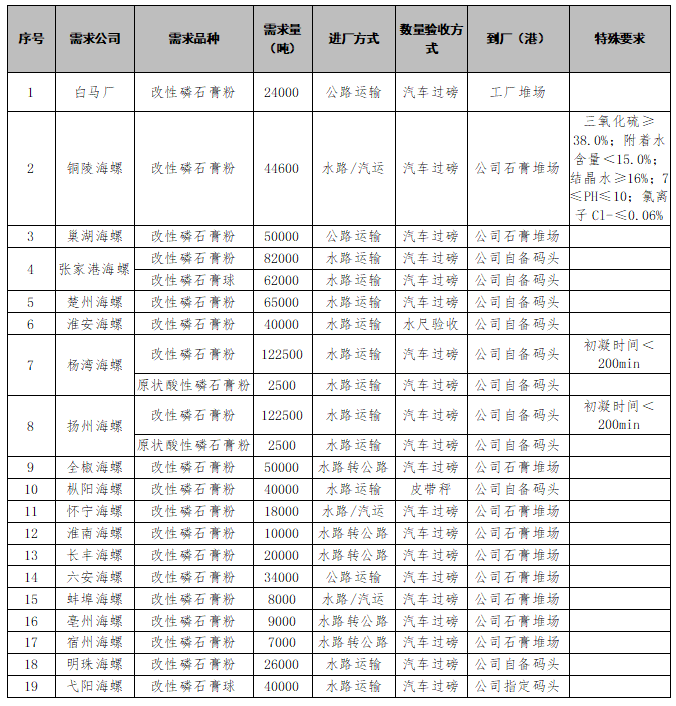 根據海螺水泥各公司生產經營計劃,安徽銅陵海螺水泥有限公司聯合華東及中部地區部分公司對磷石膏進行聯合招標,為進一步體現公平、公正、公開的原則,拓寬采購渠道,提高采購質量,現將招標采購信息發布如下: