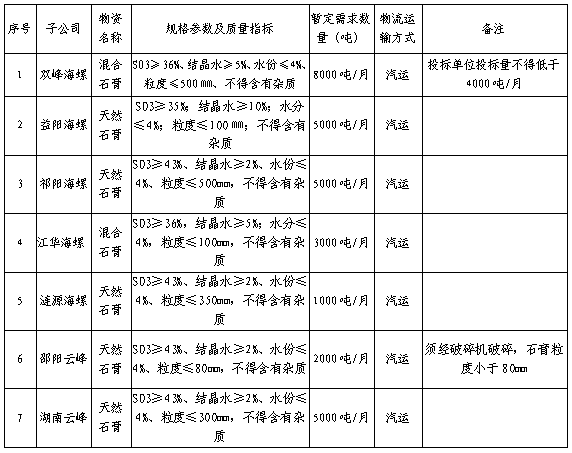 5、投標雙峰海螺混合石膏的單位投標量不得低于4000噸/月,否則為廢標。