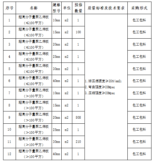 1.標的物:超高分子量聚乙烯板(純材料/包工包料)。