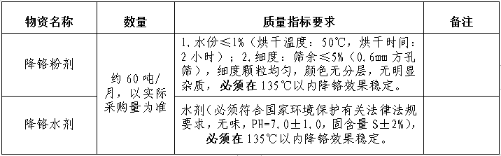 按照除稅降低1單位六價鉻使用成本(元/ppm/噸)最優確定中標單位,具體以開標前評標組人員所定評標原則為準。