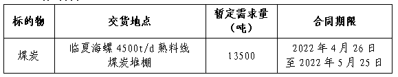 2.標書發放時間:2022年4月18日進行資質審核,如報名標單位資格審查通過,經臨夏海螺財務處審核后,報名單位可在海螺物資陽光采購平臺上自行下載招標文件。