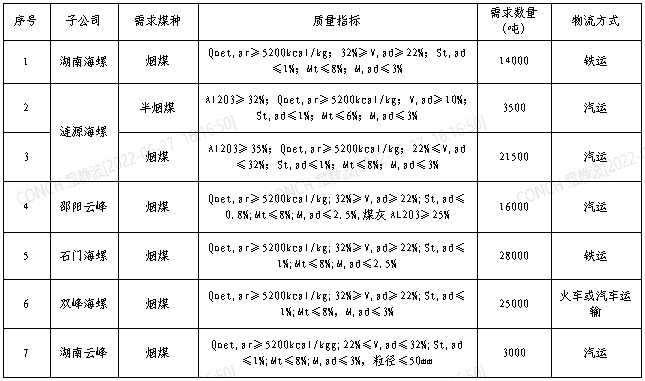 根據2022年7月21日-2022年8月20日海螺水泥湖南區域各子公司煤炭需求,現擬對煤炭進行公開招標,選定中標人,為體現公平、公正、公開的原則,拓寬采購渠道,現將招標相關事宜公告如下: