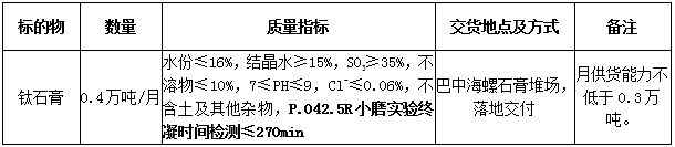 3.投標渠道必須為直供渠道或加工型企業,擁有穩定的鈦石膏原渣來源(需提供可經核實的相關包銷協議、處置協議,不接受委托書)和固定的加工設備及必要的堆存場地。新渠道需經招標人實地調研取樣化驗合格后方可參與投標,除化學指標外,招標人需要對新渠道鈦石膏凝結時間進行檢測,要求在PO42.5R小磨實驗中終凝時間不高于270min。招標人有權對投標材料中的真實性予以進一步核實,投標渠道須無條件予以配合。
