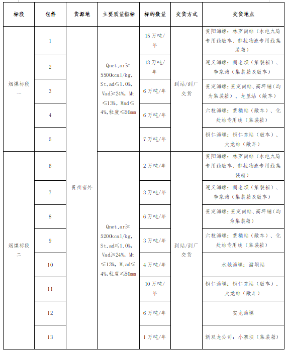 2. 投標人所提供礦點煤炭生產能力30萬噸/年及以上,礦點屬于貴州省外資源;