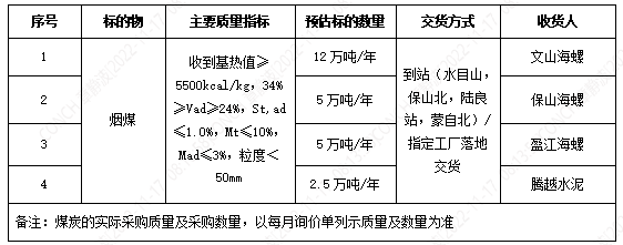 根據2023年云南區域各子公司煤炭需求,為保障各公司生產,海螺水泥云南區域擬對2023年煤炭直供渠道進行公開招標,為體現公平、公正、公開的原則,現將招標相關事宜公告如下: