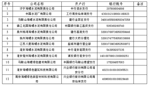 海螺水泥江蘇區域下屬十二家子公司參與招標,具體單位及聯系人如下: