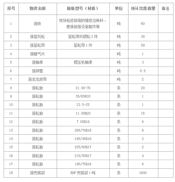 根據公司現場實際情況,本著“公開、公平、公正、誠實信用和競爭、擇優”原則,濟寧海螺水泥有限責任公司擬開展廢舊物資公開招標,歡迎具備條件的單位參加,現將有關事項公示如下: